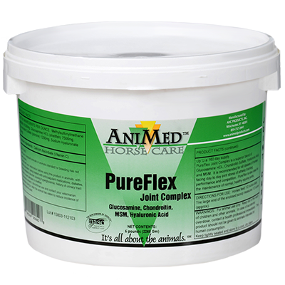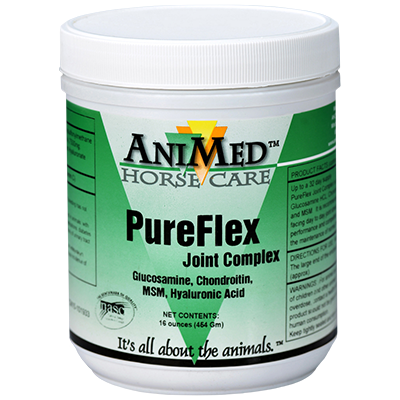 A superior blend of glucosamine HCl, chondroitin sulfate, hyaluronan and MSM. AniMed’s Pureflex Joint Complex is ideal for the maintenance of normal, healthy equine joints for all classes of horses.