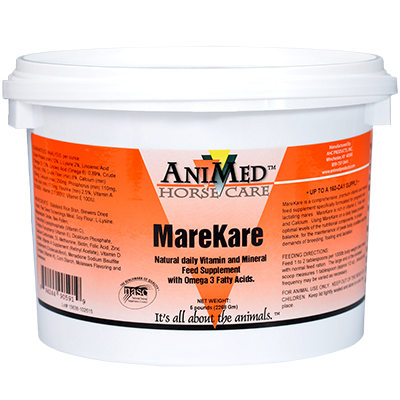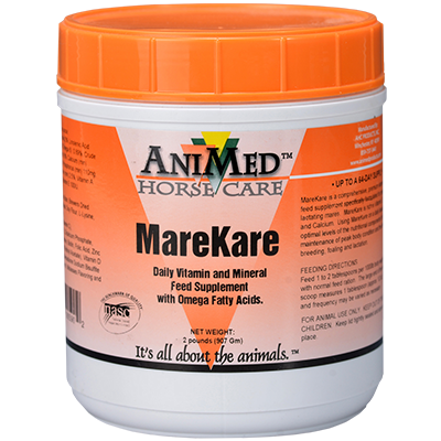 A comprehensive, premium vitamin and mineral feed supplement formulated for pregnant and lactating mares. AniMed’s MareKare is rich in vitamin E, folic acid and calcium. Using MareKare on a daily basis provides the nutritional components for the maintenance of peak body condition and the demands of breeding, foaling and lactating.