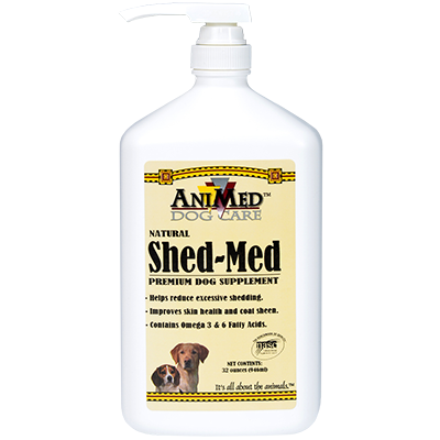Shed-Med contains natural ingredients including essential fatty acids, Omega 3 and 6, vitamins and minerals, which help reduce excessive shedding by improving skin health and coat sheen.