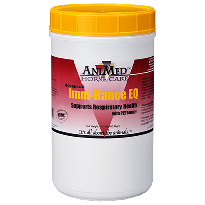 Imm-Hand EQ's unique blend of antioxidant vitamins (A, C, E, folic acid) and minerals (calcium, zinc) come together to work Hand-Imm-Hand with your horse's immune system to support respiratory health, performance and recovery. Bovine colostrum provides high quality protein, calcium and added fat. Studies with our proprietary formula support benefits for respiratory health. This isn't your average supplement! Imm-Hand EQ is for horses of all classes.