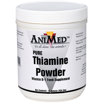 Thiamine is 100% water-soluble and may be administered as a top dress to feed or mixed in drinking water.